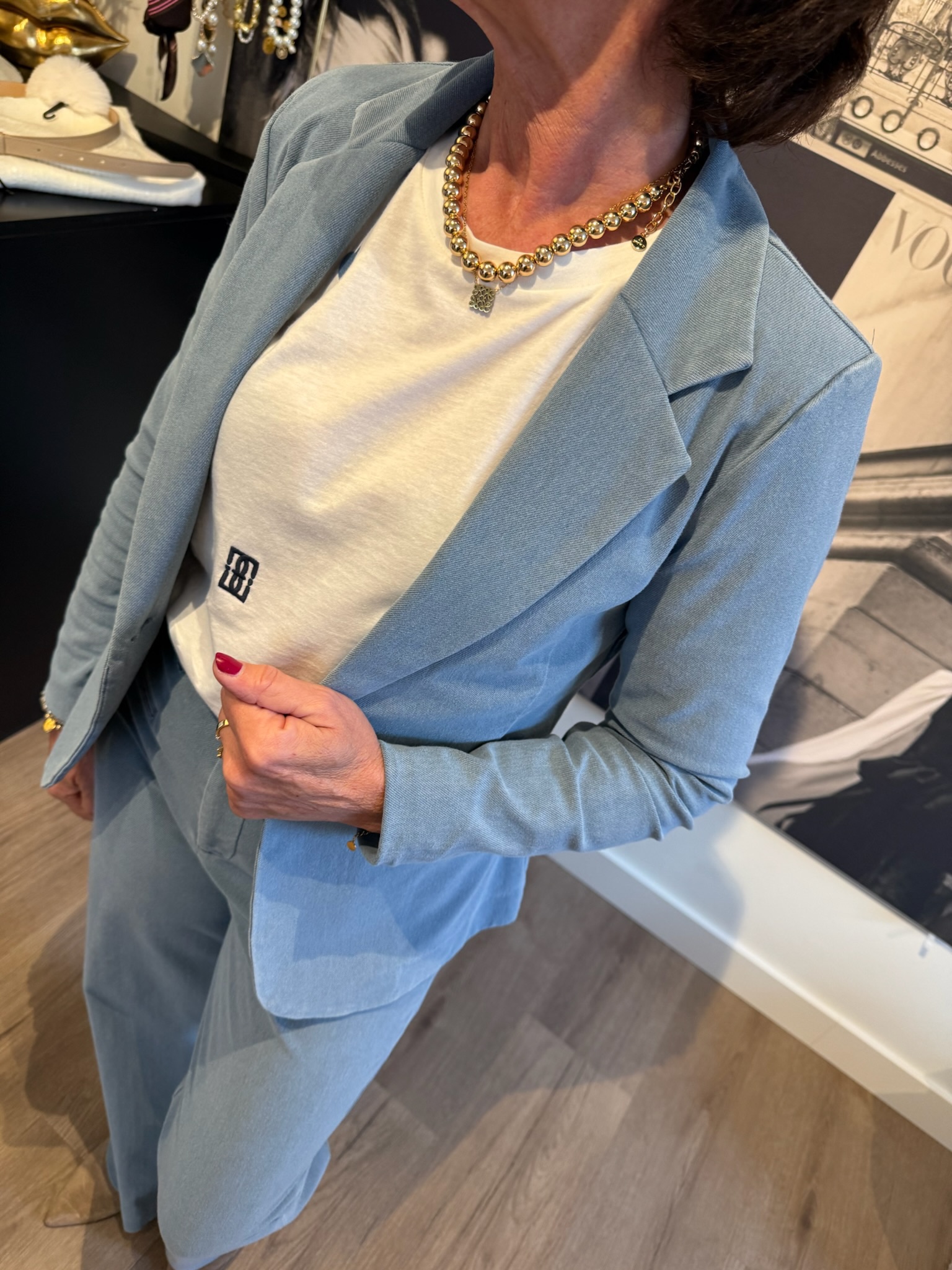 Deze blazer van ICHI is licht jeansblauw en gemaakt met een beetje stretch, waardoor hij comfortabel zit en goed mee beweegt. Hij is ideaal om zowel casual als netjes te dragen en past makkelijk bij veel outfits. Een fijne, veelzijdige blazer voor iedere dag.
