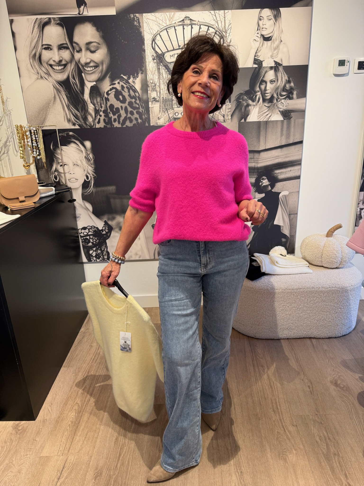 Deze comfy trui is verkrijgbaar in twee frisse kleuren: geel en fuchsia. De one-size pasvorm valt soepel en is comfortabel te dragen tot en met maat L/XL. Dankzij de zachte kwaliteit en relaxte fit is dit een ideale trui voor elke dag, makkelijk te stylen en altijd on-trend.